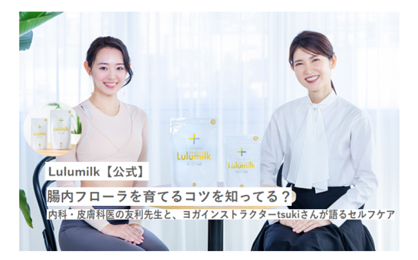 いつもの食事にプラスオンするだけで手軽に取り入れられるルルミルクの実感体験を、内科・皮膚科医の医師として美容と健康にまつわる知識が豊富な友利先生と、くびれるヨガや明日が変わるセルフケアを発信しているヨガインストラクター tsukiさんが本音で話し合います。
