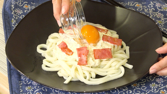 ・豆腐のイソフラボンには抗酸化作用が期待できます。また、クリームを豆腐で作るため通常のカルボナーラより、カロリーを抑えることができます。