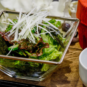 サニーレタスは食べやすい大きさに手でちぎる。きゅうりは縦半分に切り種を取り除き斜めに薄くスライスする。ねぎは繊維に沿って千切りに、にんにくはすりおろす。