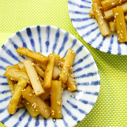 ごぼうは皮をこそげ落とし、拍子切りにして少し固めに茹でる。