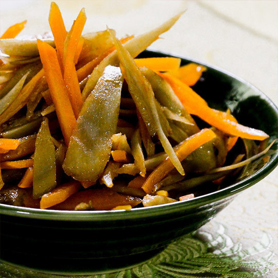 ・βカロテンが豊富なにんじんと食物繊維が豊富なごぼうのレシピです。