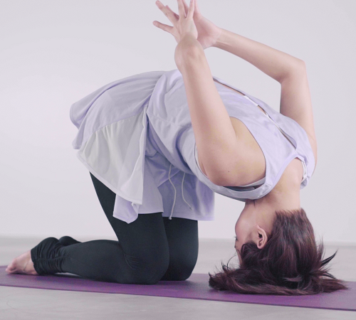 ②頭頂を床につき、ゆっくりと腰をあげる。