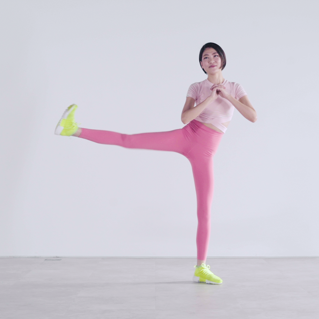 サイドキックの時はお腹に力を入れ、体の軸がブレないようになるべく大きく蹴り出します。