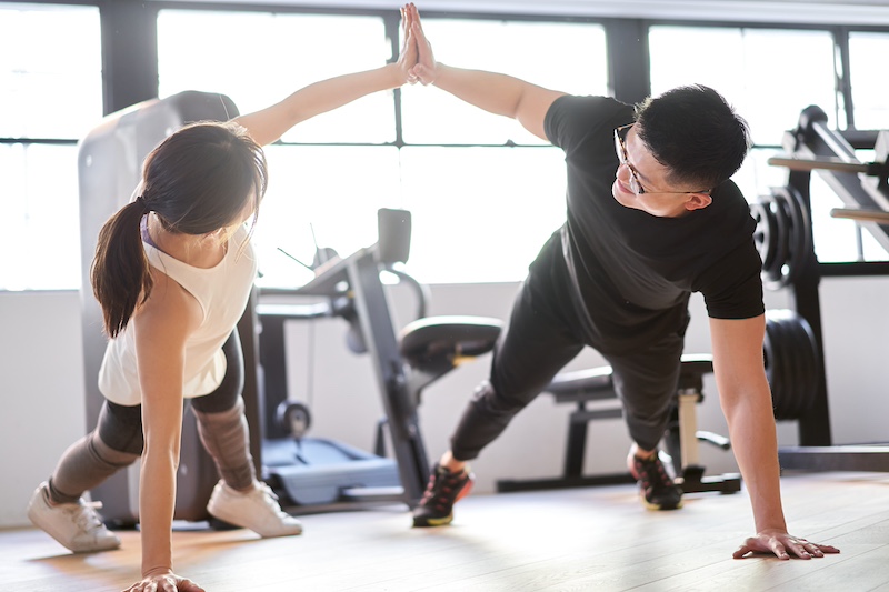 ・腕立ての姿勢の人の動きに合わせる