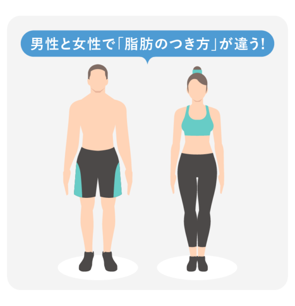男性が「内臓脂肪」がつきやすく、ぽっこりお腹になりやすい一方、女性は「皮下脂肪」がつきやすく、腰周りや太ももがふくよかな洋なし太りになりやすい傾向にあります。