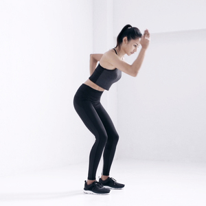 ① 脚を肩幅に開き、前傾姿勢を作ります