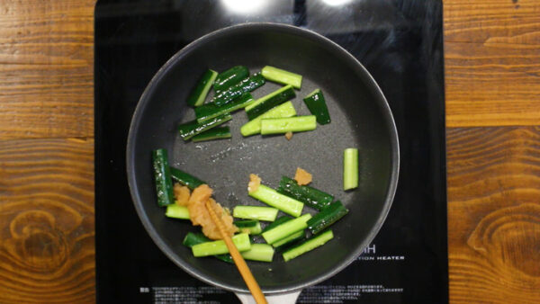 ・明太子に火が通り過ぎないよう、一旦火を止めてから加えます。