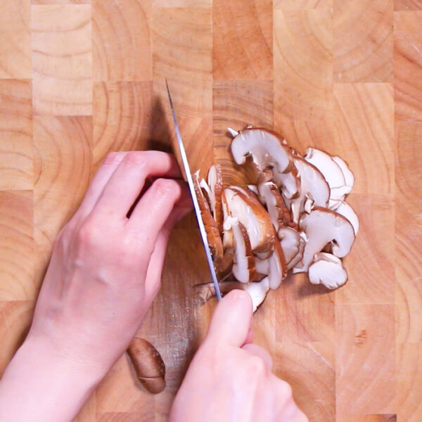 えのきはいしづきをとり半分の長さに切る。しめじは小房に分け、しいたけは薄くスライスする。