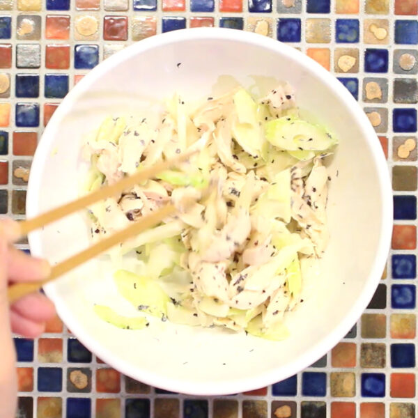 ボウルに2、3、マヨネーズ、赤しそふりかけを入れて加える。