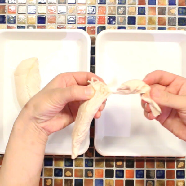 ・鶏ささみをゆで汁の中で冷ますことで、しっとり仕上がります。
