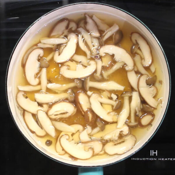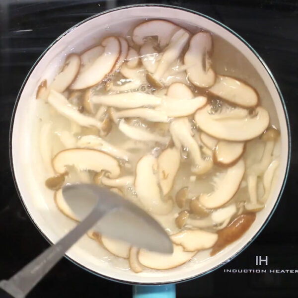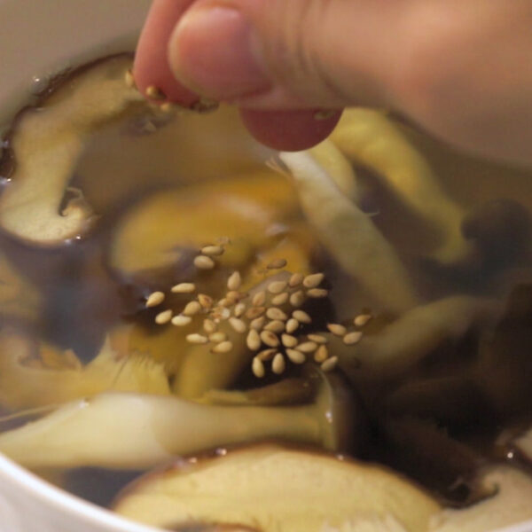 きのこに火が通ったら、オイスターソースを加えて一煮立ちさせる。