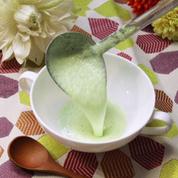 ・トッピングにえだまめをおき、牛乳をまわしかけるときれいに盛り付けできます。