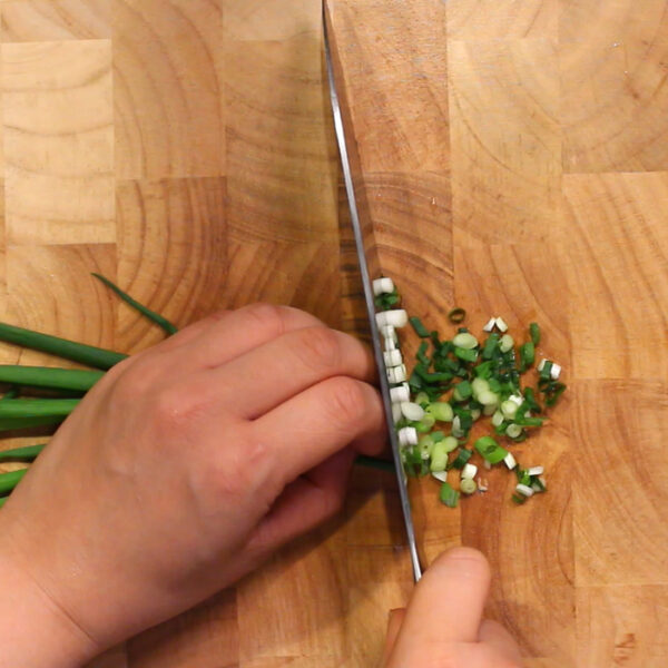 小ねぎも、2mm幅の小口切りにする。