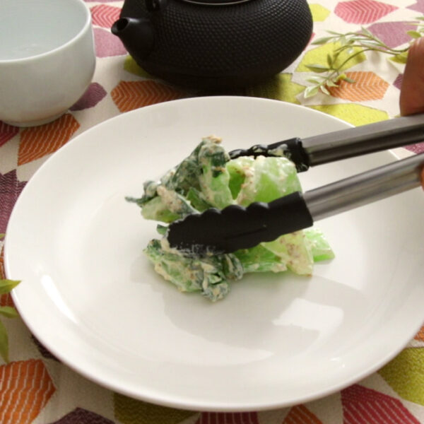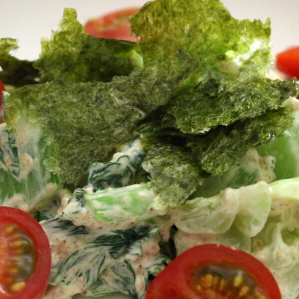 味付け海苔をちぎって、サラダの上にのせる。