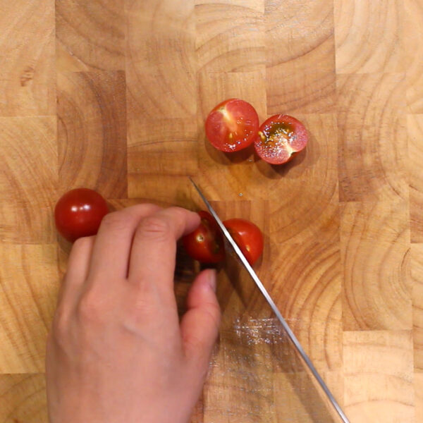 ミニトマトは、半分に切る。