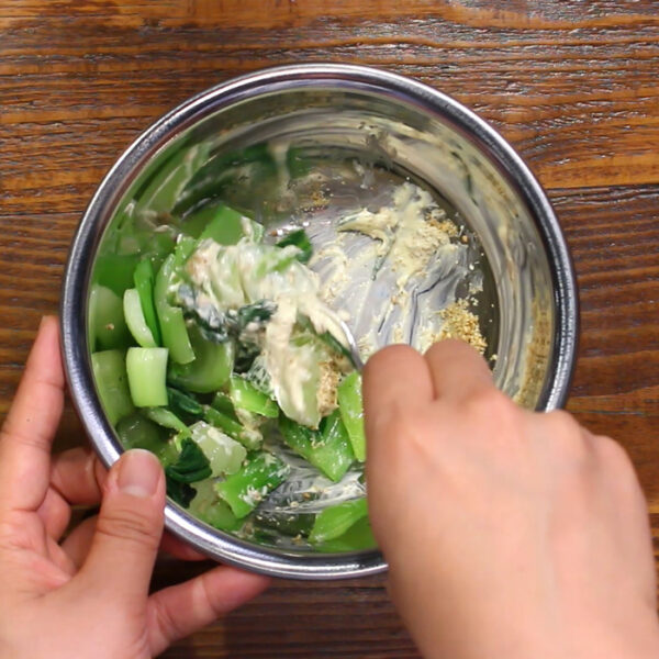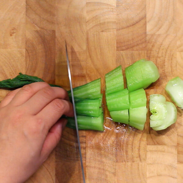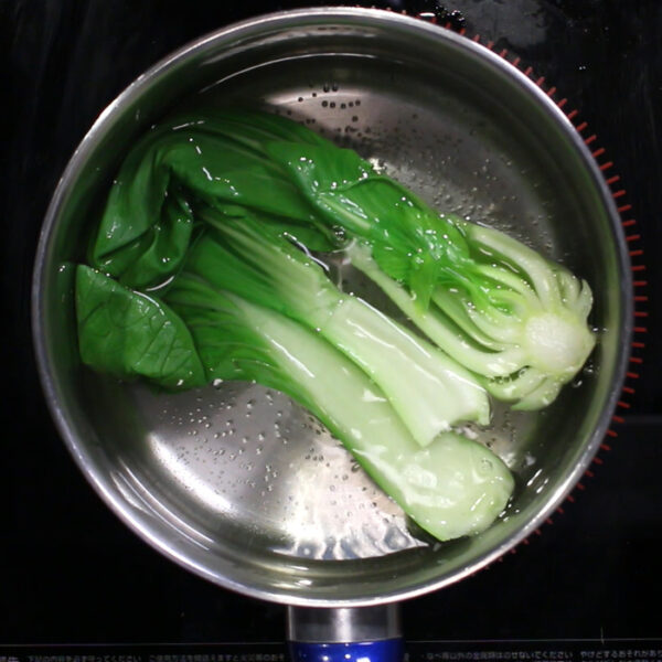 鍋にたっぷりお湯を沸かし、青梗菜を20秒ほど湯通しする。
