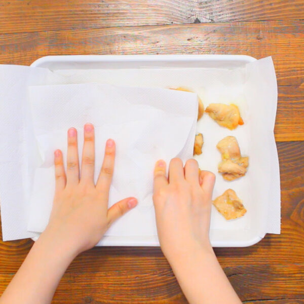 焼けたらキッチンペーパーの上に並べ、余分な脂を吸い取る。
