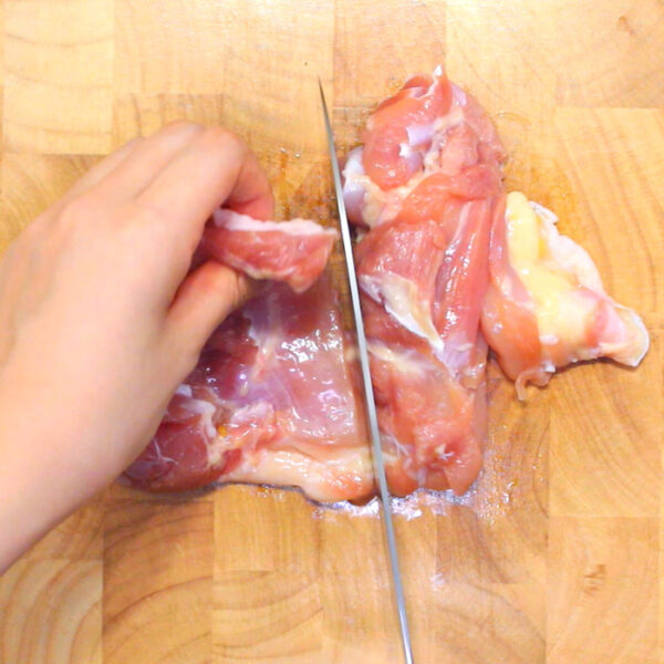 鶏肉は一口大に切る。レモンの皮をすりおろす。