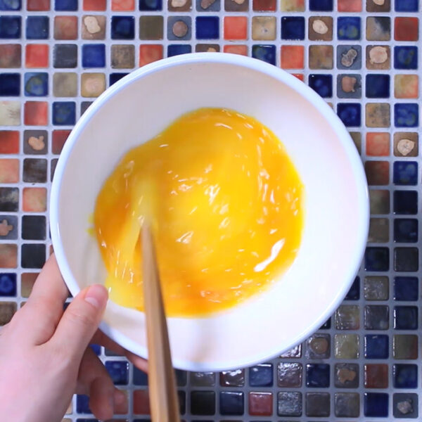 卵を溶き半分に分ける。片方の溶き卵に、1、2、塩を加える。
