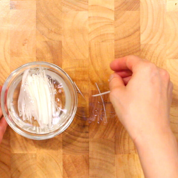 170~180℃に熱した油に1をさっと素揚げし、キッチンペーパーで余分な脂を取る。