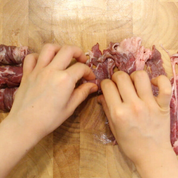 牛肉は端からくるくると巻いておく。