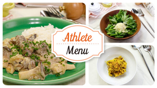 ①たんぱく質摂取!牛肉エリンギストロガノフ