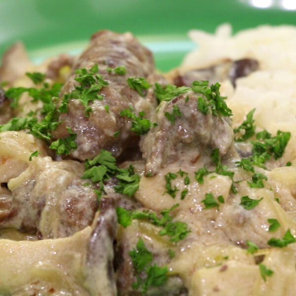 たんぱく質摂取!牛肉エリンギストロガノフ
