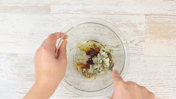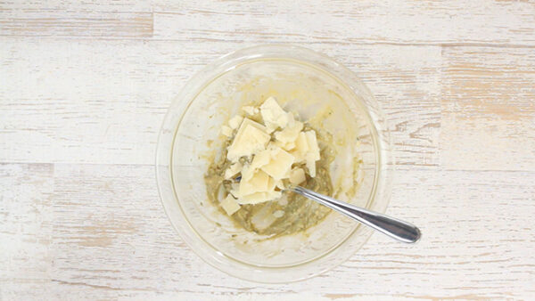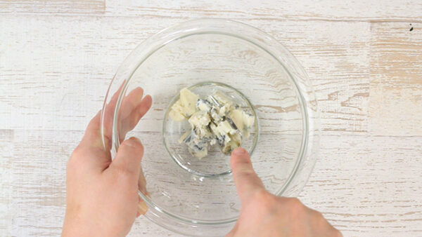 ゴルゴンゾーラチーズをフォークやスプーンでつぶして練る。