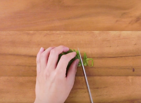 3を器に盛り付けて、千切りの大葉を乗せたら完成。