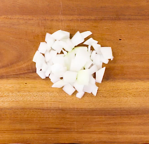 パプリカとたまねぎは1cm角程度の大きさに切る。しょうがはみじん切りにし、にんにくは薄切りにする。ミックスナッツは刻む。