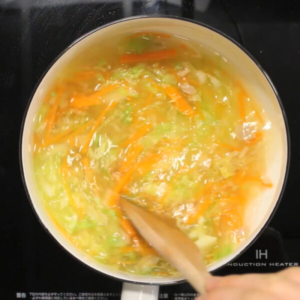 野菜をしっかり煮込み、塩、しょうがを加え味を調える。黒胡椒をふる。