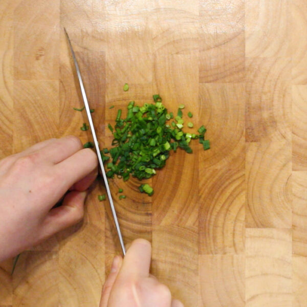 しょうがはみじん切り、小ねぎは小口切りにする。