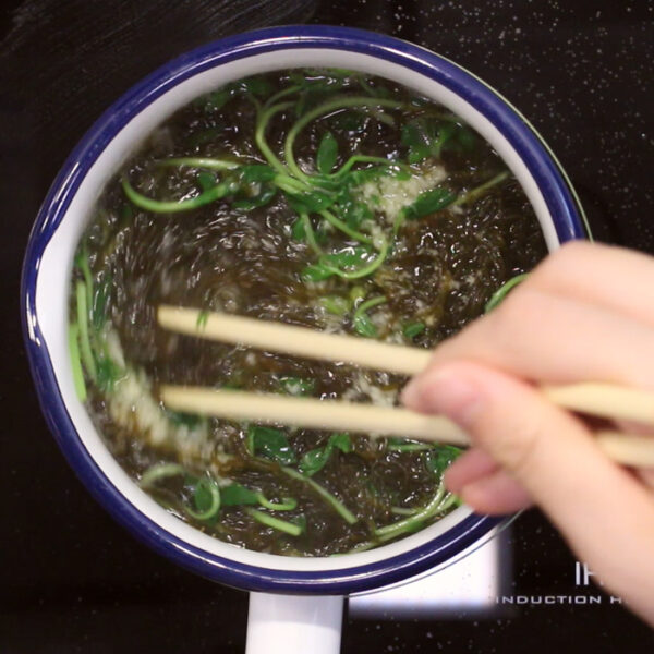 ・豆苗は生もずくは食感を楽しみたいので、煮立たせない様にするのがポイントです。