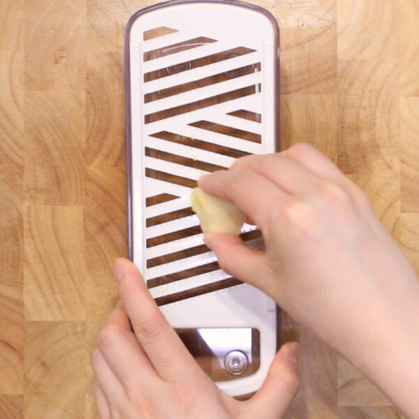 生姜は皮を剝き、すりおろしておく。豆苗は、根元を切り落とし洗っておく。