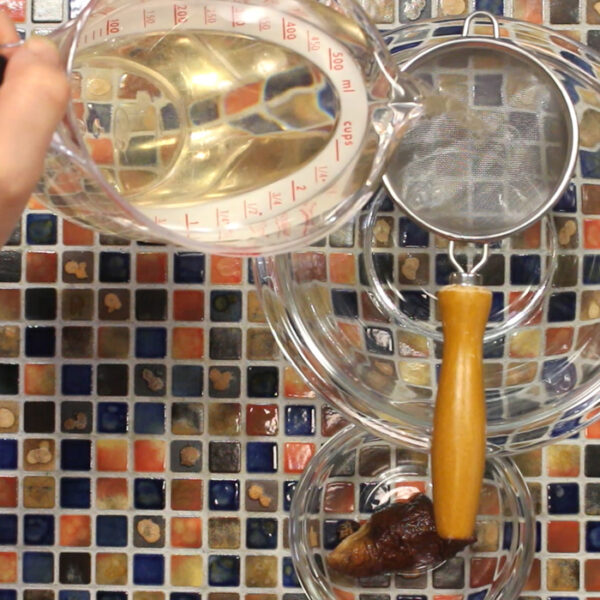 Aを冷蔵庫で一晩漬け、干し椎茸を十分に絞ってから茶こしでこす。