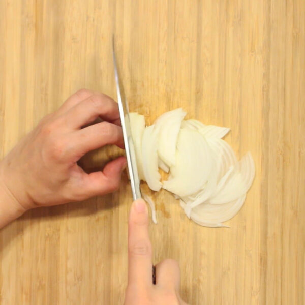キャベツはざく切りに、たまねぎは薄切りにする。