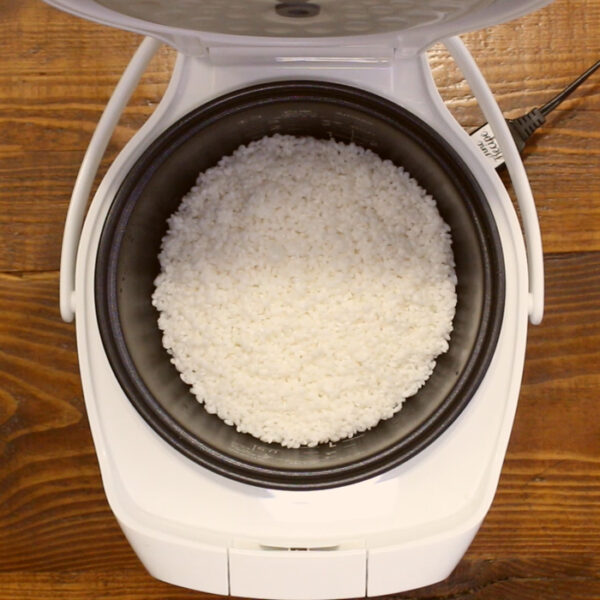 米は洗ってザルにあげておく。炊飯器に米を入れる。