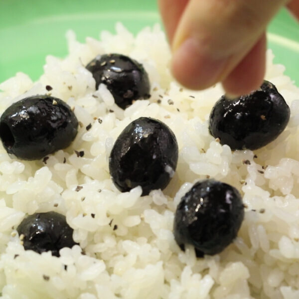 ・包丁いらず、オリーブの実を一緒に入れて炊くだけの簡単レシピです。