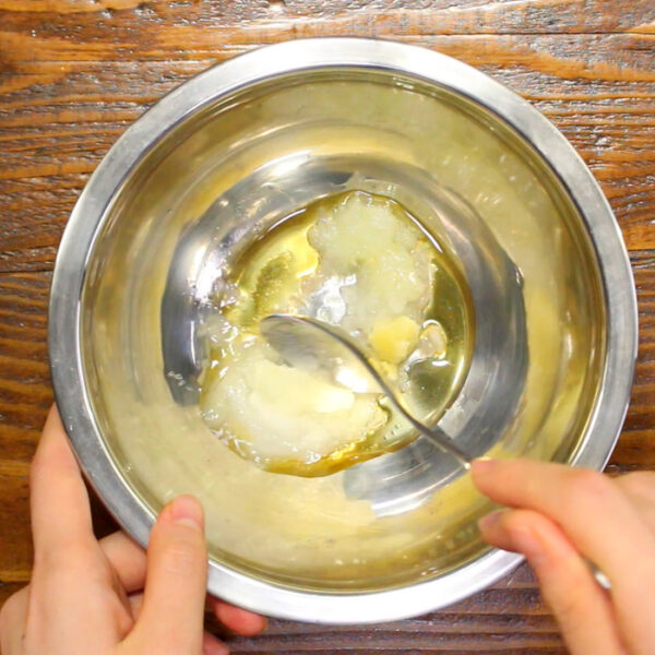 ボウルにたまねぎをすりおろし、Aを加えてよく混ぜる。