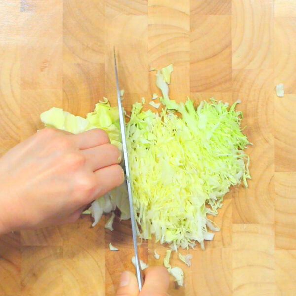 キャベツを千切りにし、冷水にさらしシャキッとさせ水気を切る。