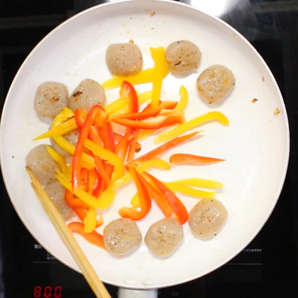 ・パプリカは食感を残すよう、遷移にそって縦に切るようにしましょう。