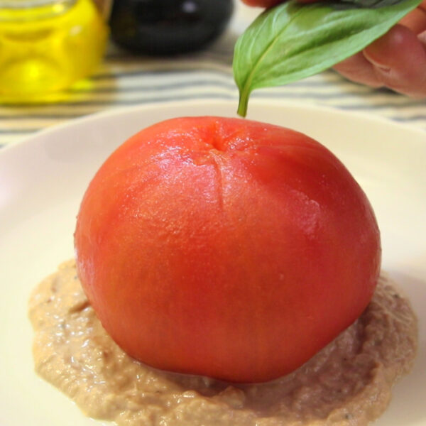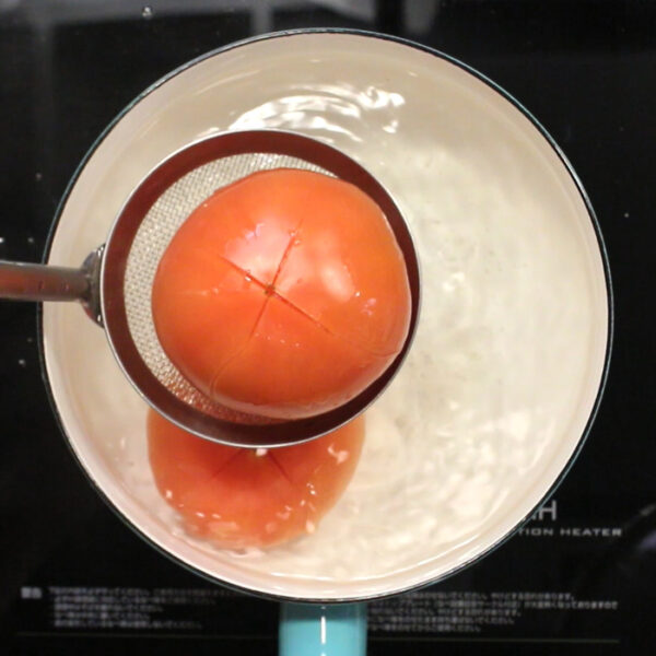 トマトは湯剥きしてヘタを取り、冷やしておく。