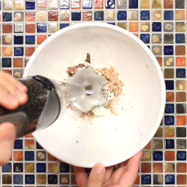 ボウルに軽く油を搾ったツナ缶、無糖ヨーグルト、アンチョビ、塩、胡椒を入れてブレンダーで攪拌する。