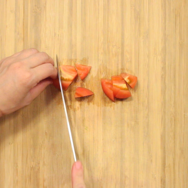 トマト、パプリカは一口大に切る。