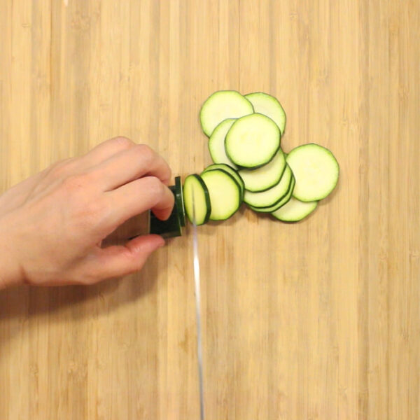 ズッキーニは薄い輪切りにする。