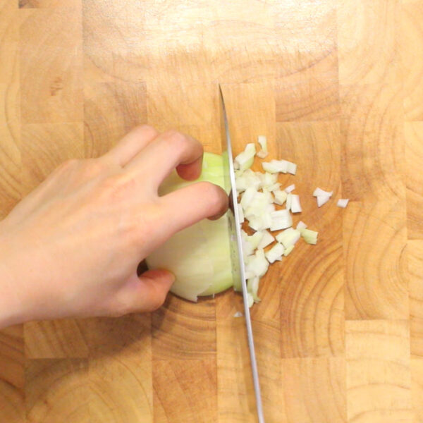 えのきは石づきを落とし、1cm程度に切る。たまねぎはみじん切りに、イタリアンパセリは粗みじんにしておく。