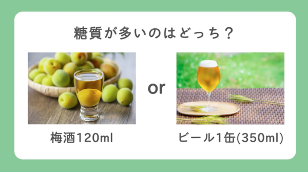 梅酒は作る時に氷砂糖をたっぷり使うため、商品によってはビールの2倍以上の糖質量となることもあります。 「健康そうだから」と甘いお酒を選んでいた方は要注意。