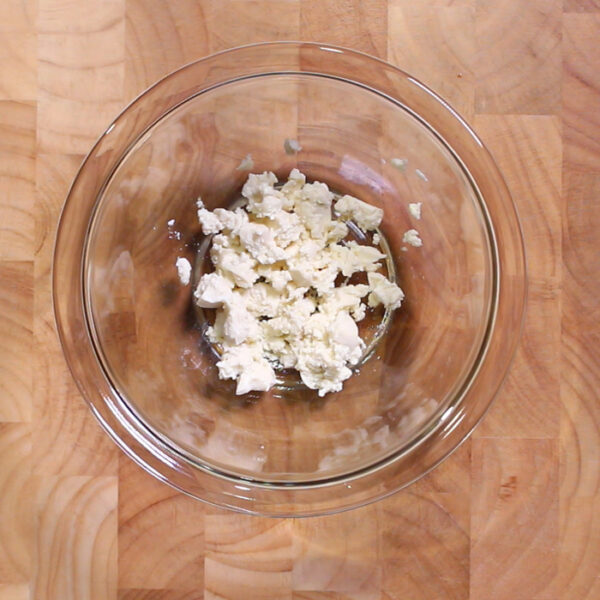 木綿豆腐をキッチンペーパーに包み軽く水気を切り、ボウルに入れてくずす。