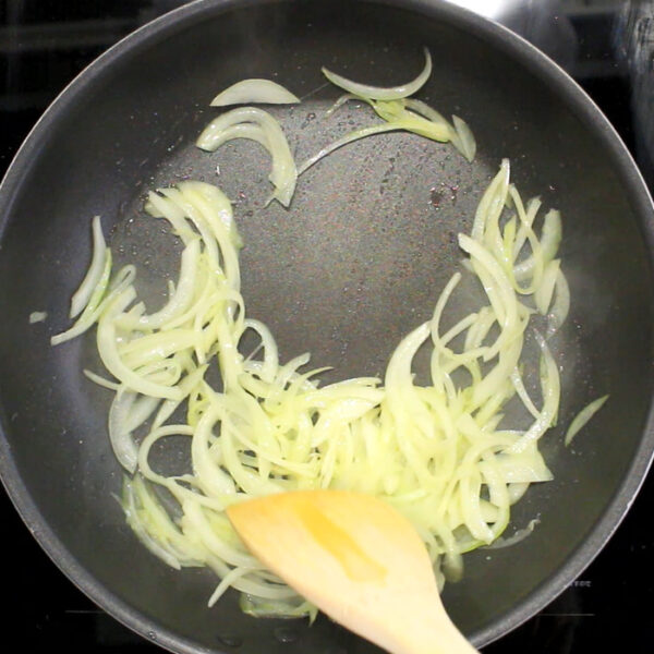 フライパンにオリーブ油をひき、たまねぎをしんなりするまで炒める。