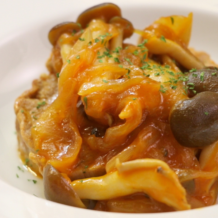 たまねぎはスライスし、しめじは石づきを落としてほぐす。